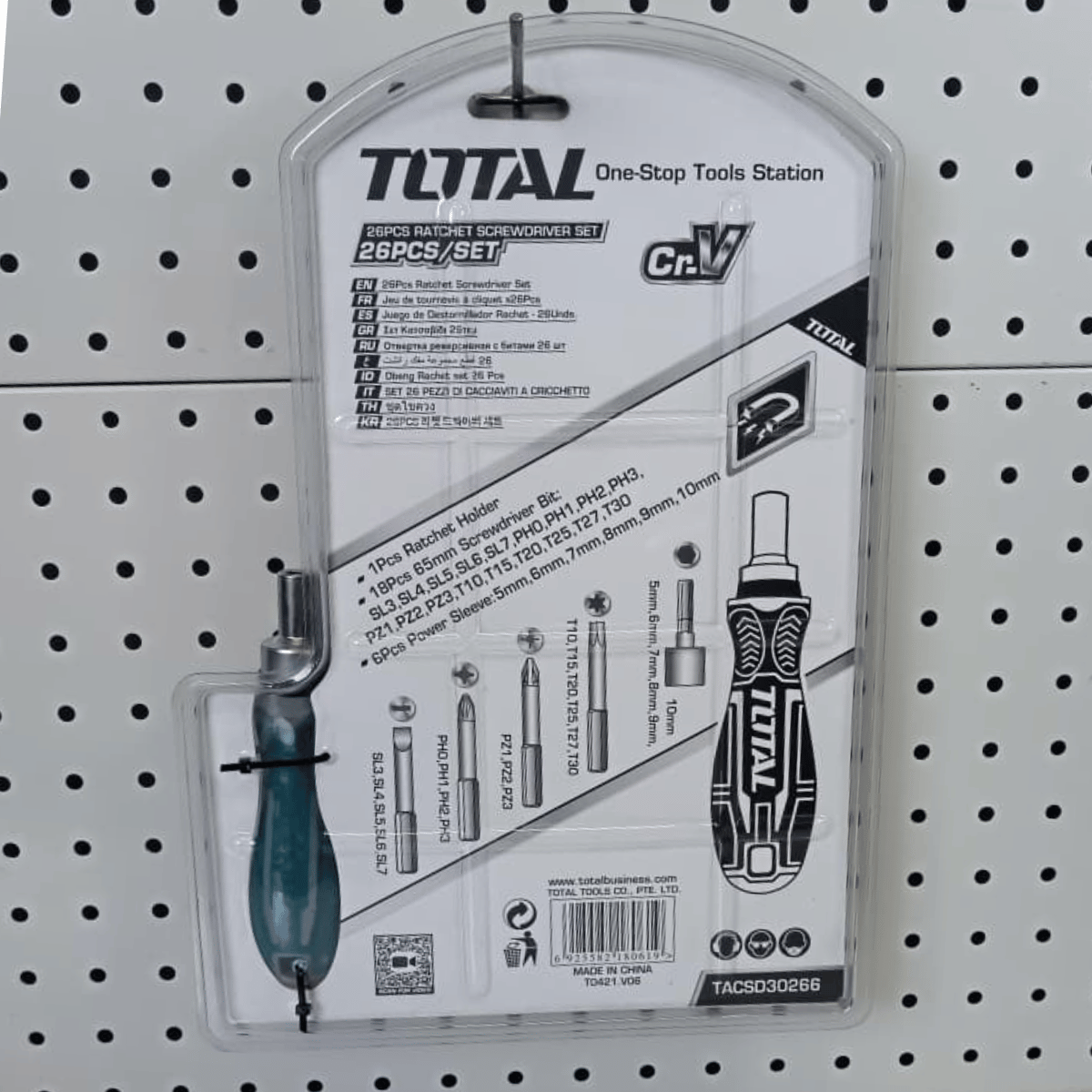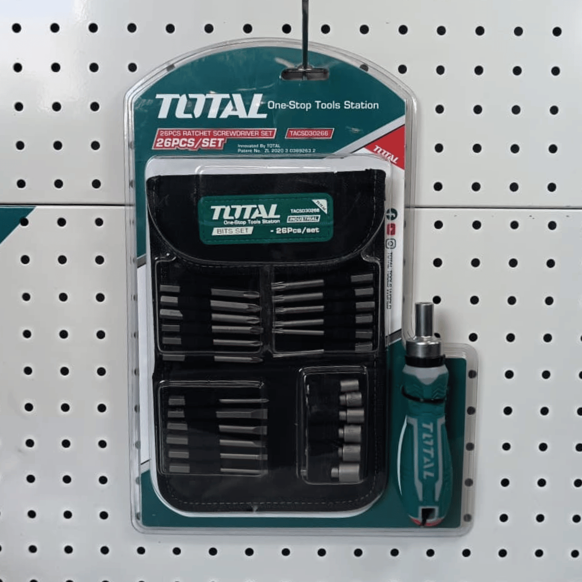 Herramienta profesional TOTAL: juego de 26 puntas con destornillador ractchet, versátil y durable para trabajos precisos y rápidos