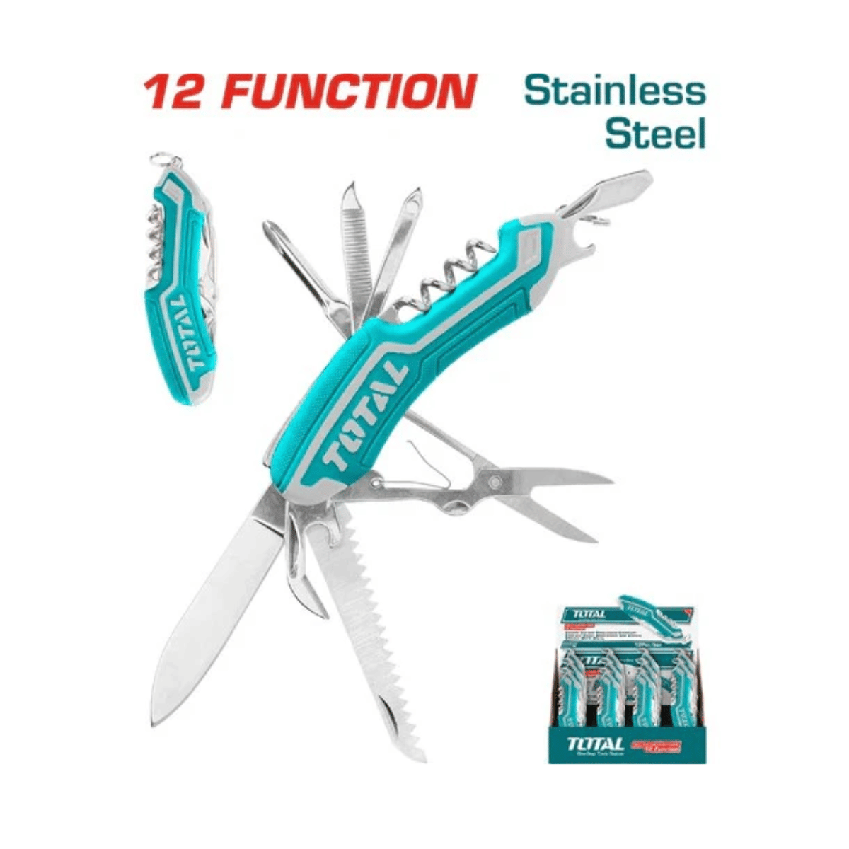 Ha sido diseñada para ofrecer versatilidad, comodidad y durabilidad en una sola herramienta compacta. Con 12 funciones integradas como cuchillo, tijeras, destornilladores, sierra, sacacorchos, lima y más, permite resolver cualquier imprevisto en el hogar, el taller, el trabajo o actividades al aire libre. Su mango ergonómico en aluminio bicolor proporciona un agarre seguro y cómodo, facilitando el uso prolongado sin fatiga y asegurando control y precisión en cada función.