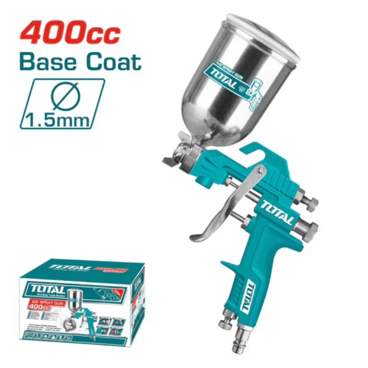 Aplicación profesional de capas base en pintura automotriz y proyectos industriales 🚗🏭: Perfecta para talleres de carrocería, pintura industrial y proyectos de detalle, ofreciendo acabados uniformes y de alta calidad en vehículos, maquinaria, muebles y superficies metálicas. Su boquilla de 1.5mm y vaso de 400CC permiten cobertura precisa y constante, optimizando tiempo y esfuerzo.