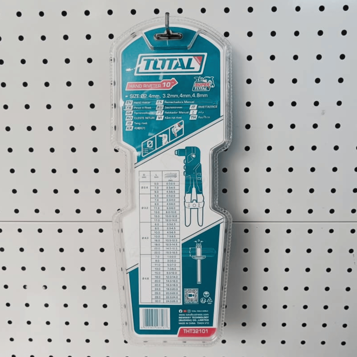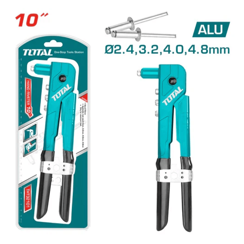 La Remachadora Manual Total de 10" está diseñada para ofrecer uniones firmes, seguras y profesionales en todo tipo de trabajos metálicos. Compatible con remaches de 2.4 mm, 3.2 mm, 4 mm y 4.8 mm, permite realizar diferentes aplicaciones sin necesidad de múltiples herramientas. Su estructura robusta de acero garantiza durabilidad y resistencia, mientras que el mango ergonómico proporciona comodidad durante su uso, reduciendo la fatiga y facilitando un manejo preciso en cada operación.