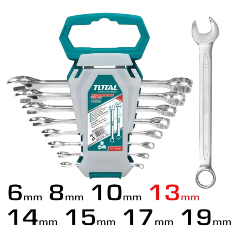 Set de 8 Llaves Mixtas Total: rendimiento, resistencia y ajuste preciso en cada tarea, ideal para talleres y uso profesional en medidas de 6–19 mm