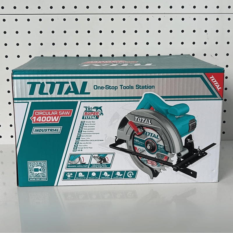 La Sierra Circular TOTAL de 1400W ha sido diseñada pensando en los profesionales que requieren una herramienta confiable, robusta y precisa para trabajos exigentes. Con un motor de 1400W y una velocidad de hasta 4800 rpm, esta sierra permite realizar cortes limpios, rápidos y controlados en una amplia gama de materiales, especialmente en madera, MDF, aglomerado y más. 💪🪵