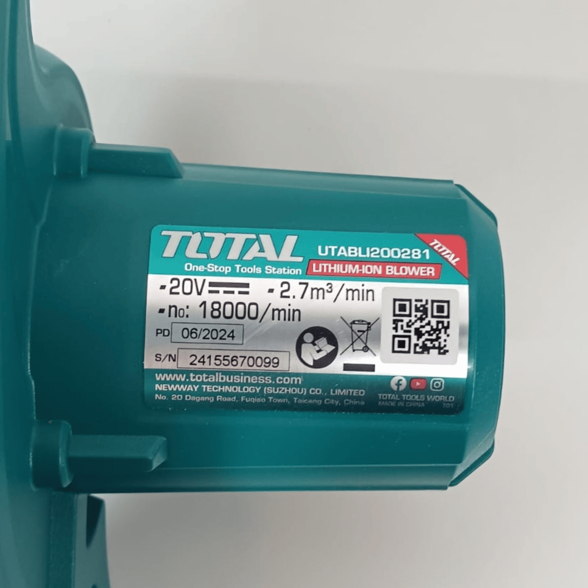 El Soplador Blower TOTAL es la herramienta perfecta para quienes buscan potencia, eficiencia y comodidad profesional en limpieza de exteriores e interiores. Con 18000 RPM y un volumen de aire de 2.7 m³/min, elimina hojas, polvo y residuos de manera rápida y efectiva, ahorrando tiempo y esfuerzo en jardines, patios, entradas o talleres.
