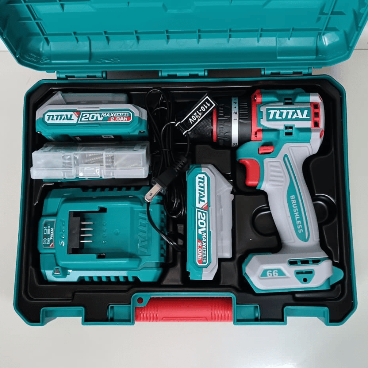 🔧 Características Principales del Taladro Percutor TOTAL 20V 1/2" 66Nm (Motor sin Escobillas)