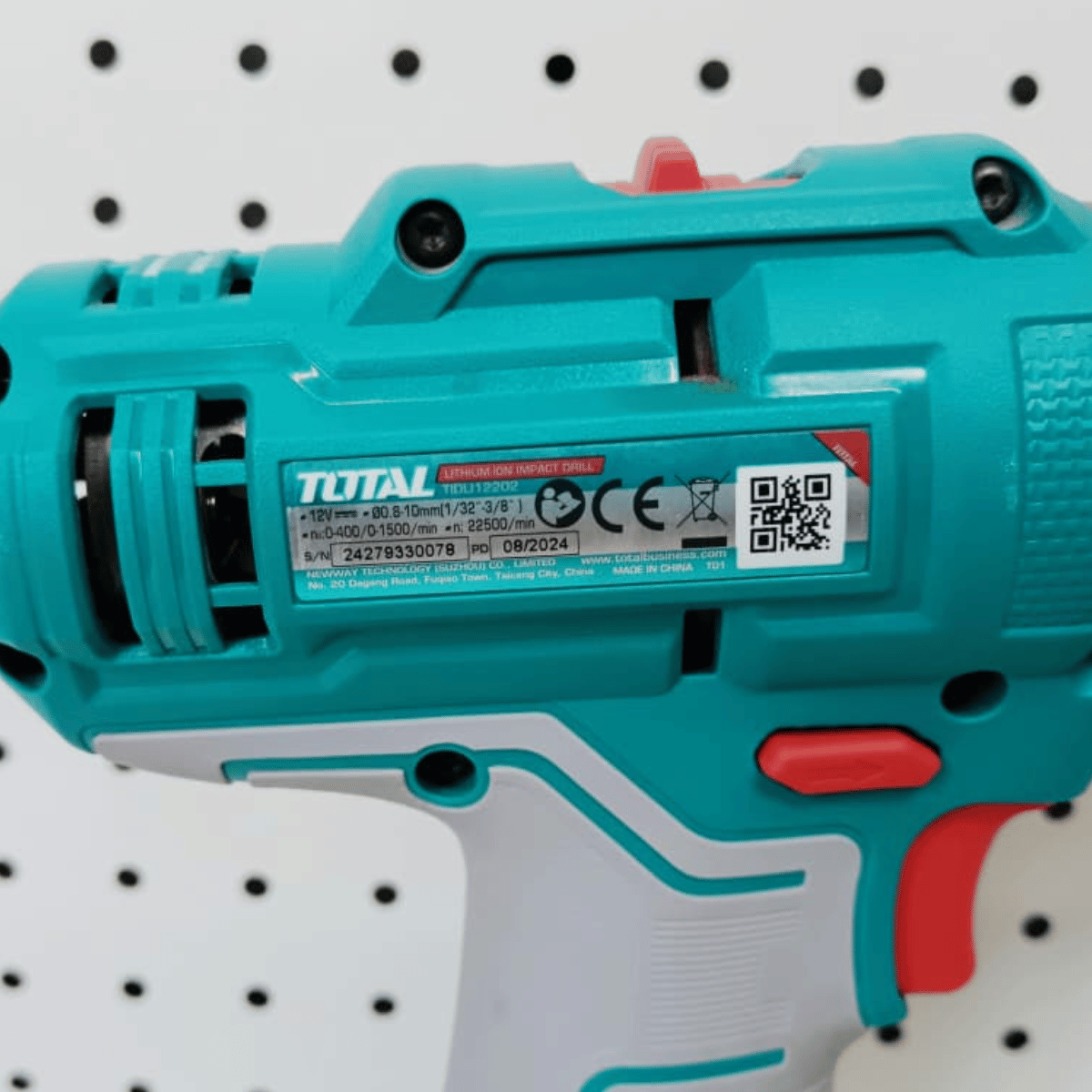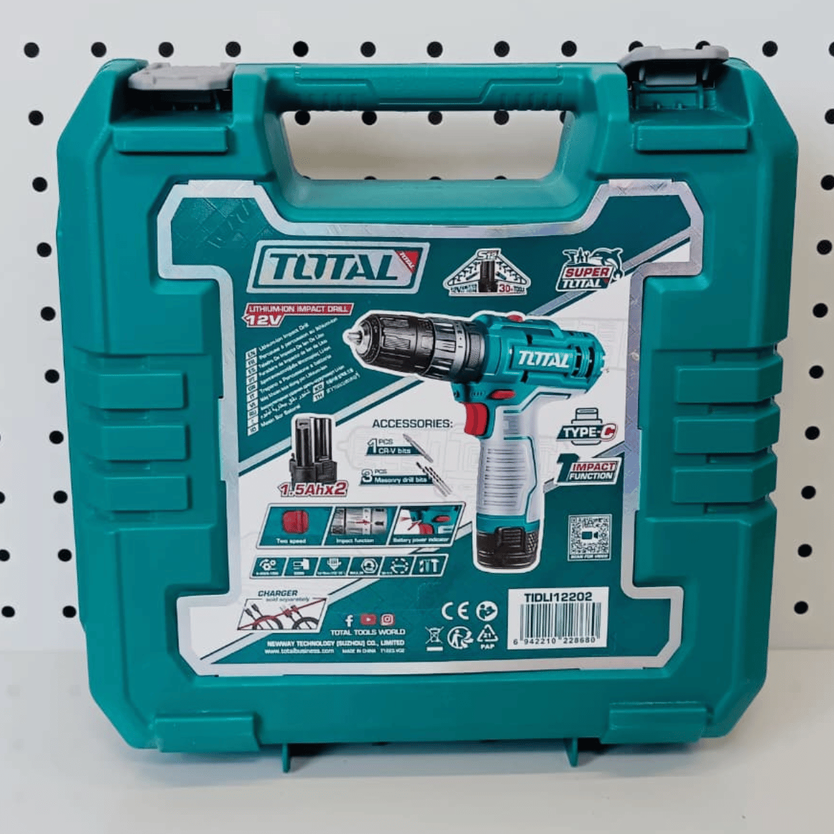 🔩 Taladro Inalámbrico TOTAL 12V (3/8") Percutor + 2 Baterías 1.5 Ah (Cargador Tipo C No Incluido)