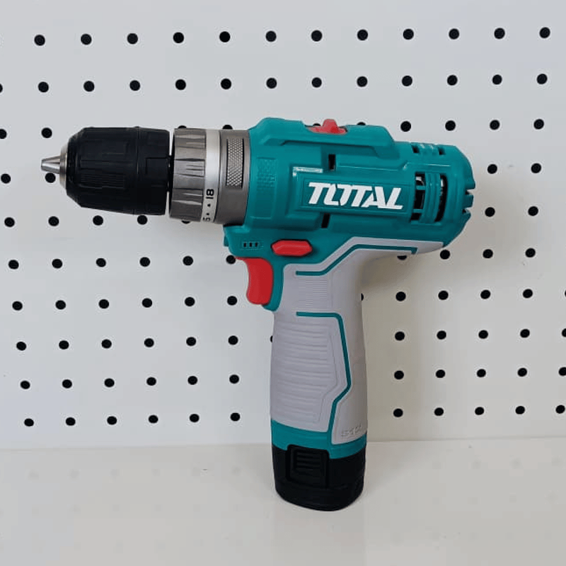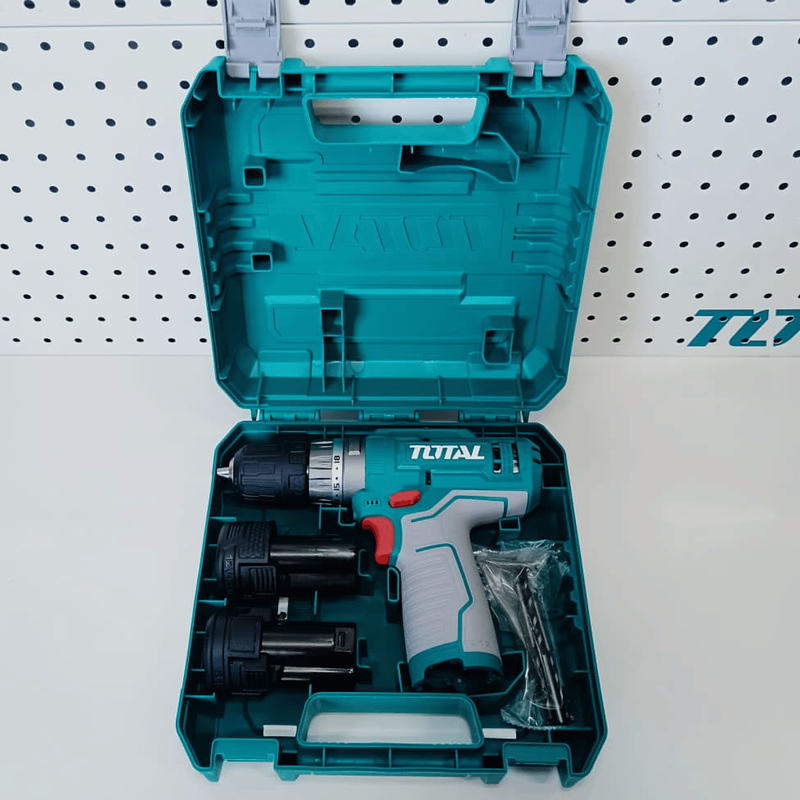 El Taladro Inalámbrico TOTAL 12V es ideal para perforar y atornillar en madera, metal y mampostería con potencia y comodidad. ✅ Función percutora con velocidad variable de 400–1500 rpm y hasta 22,500 bpm. 🔧 Torque máximo de 20 Nm con 18+1+1 ajustes para mayor control. 💡 Luz LED integrada para trabajar en áreas con poca luz. 🔋 Incluye 2 baterías de 1.5 Ah, punta Cr-V, brocas y práctico maletín. ⚡ Carga por puerto USB tipo C (cable no incluido, compatible con cargadores Samsung).