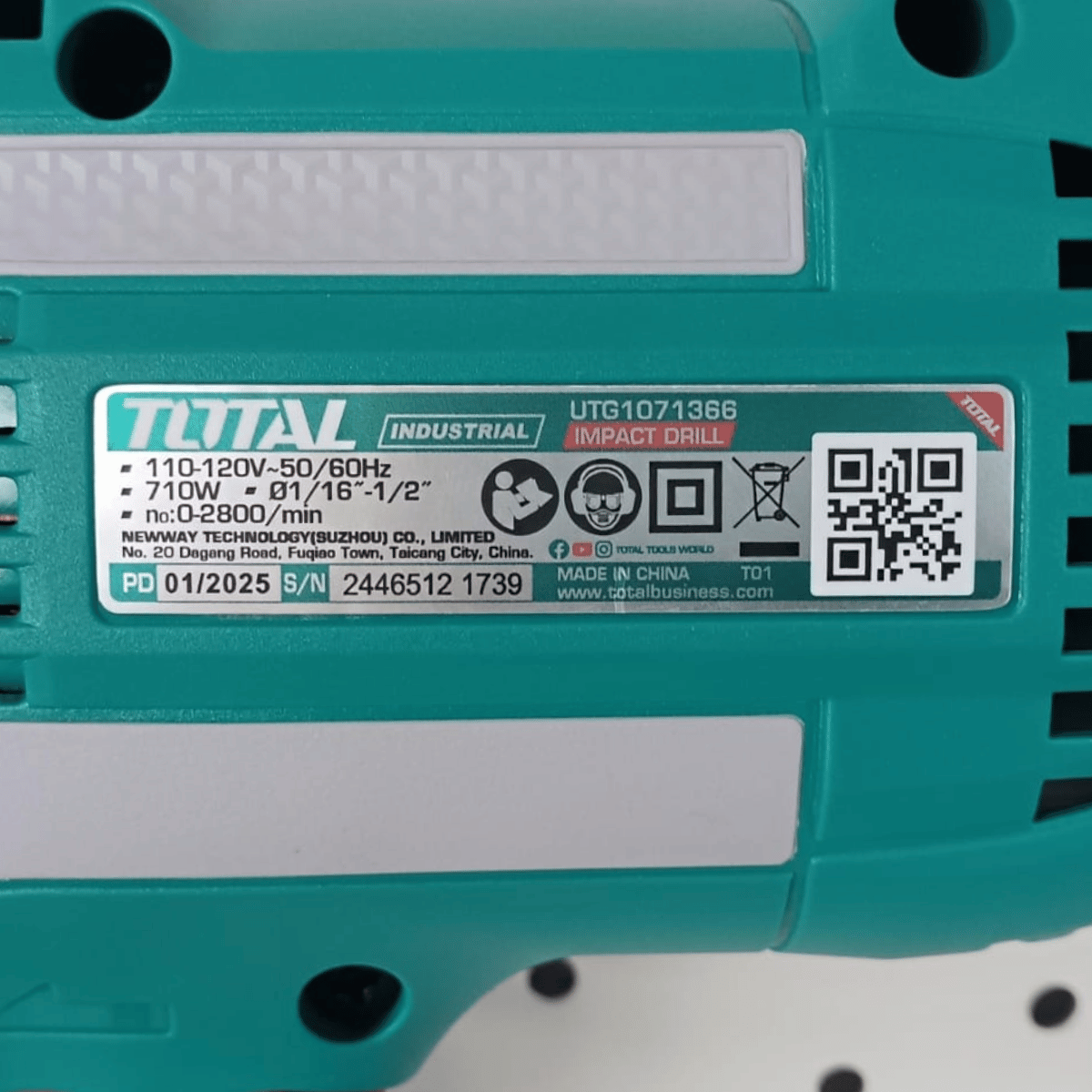 Taladro Percutor 1/2" 710W Industrial TOTAL: Potencia, precisión y durabilidad para proyectos exigentes en construcción y mantenimiento.