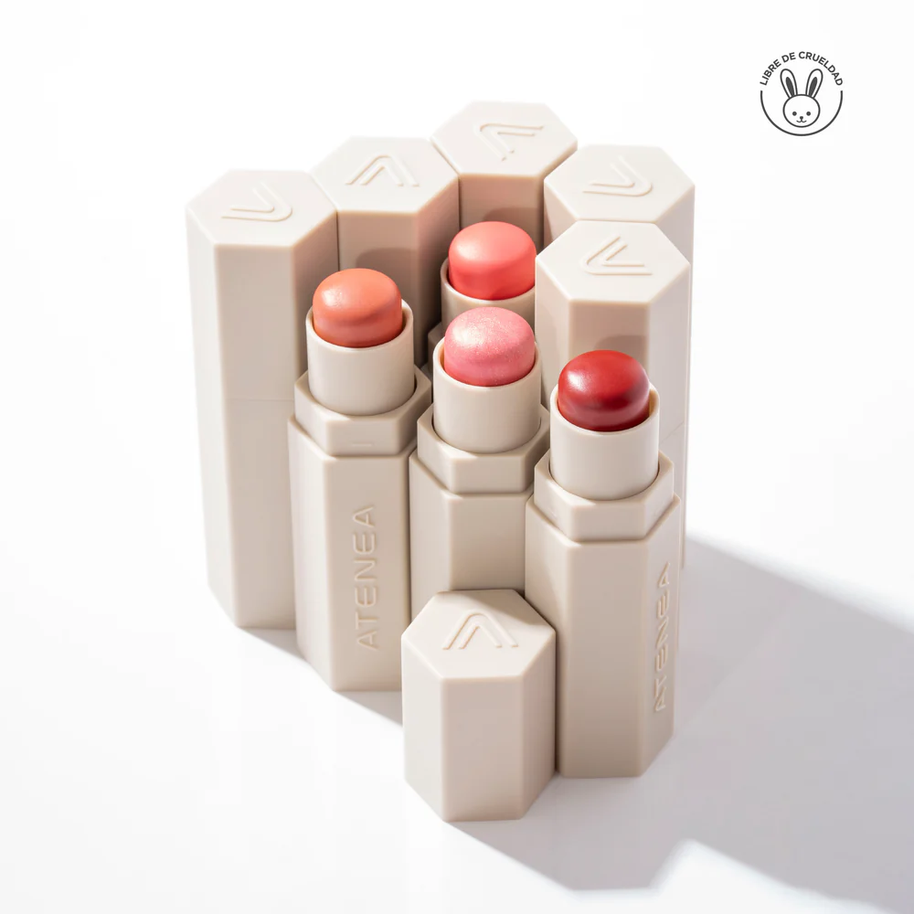 Los stick de Atenea Collection tienen textura cremosa, con fácil difuminación y de alta pigmentación, por lo que te recomendamos ir construyendo la tonalidad que deseas. El rubor en este caso aporta color a tu rostro, también puedes usarlo como sombra y labial, su tamaño es muy práctico para llevar en la cosmetiquera.