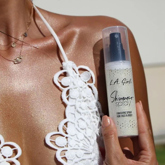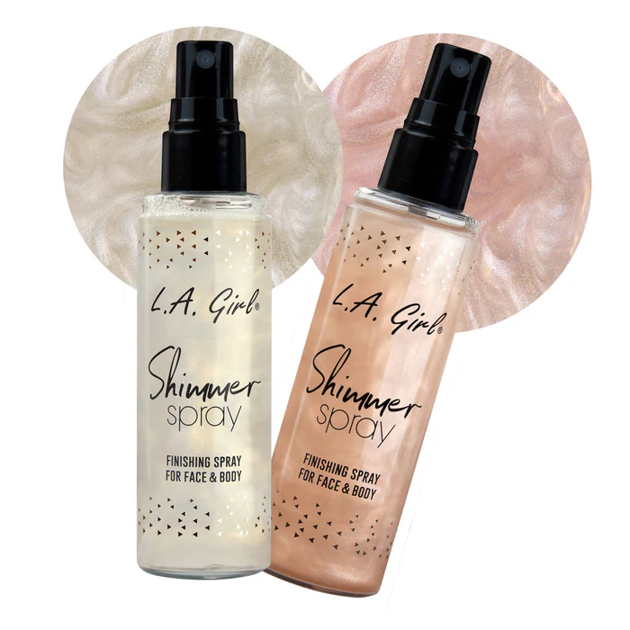 Spray disponible en dos tonos, ayuda a que el maquillaje se vea fresco todo el día y que la piel se vea radiante. Cada spray se mezcla con brillo perlado para obtener el máximo brillo iluminador.¡Perfecto para rostro y cuerpo!
