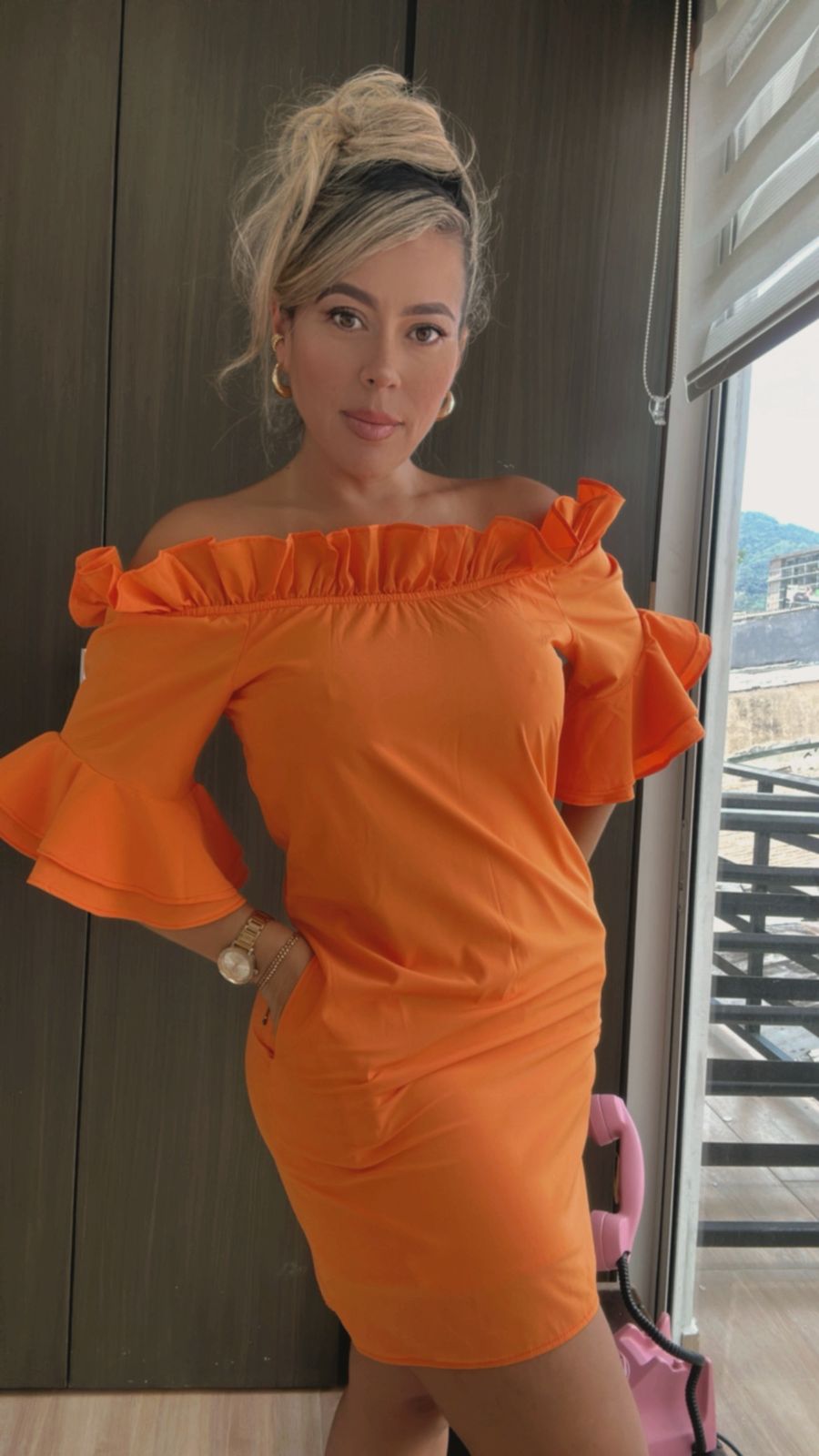 Vestido Naranja, manga corta en bolero, comodidad, frescura y belleza en una sola prenda.