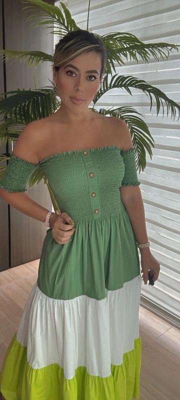 Vestido largo en popelina con diseño encauchado, fresco y femenino, ideal para lucir cómoda y elegante en cualquier ocasión.