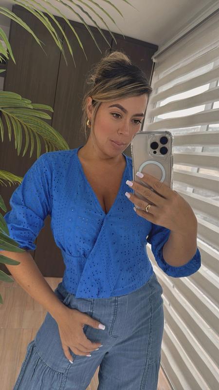 Blusa de hojalillo manga larga, fresca y femenina, con un diseño delicado que combina elegancia y comodidad para cualquier ocasión.