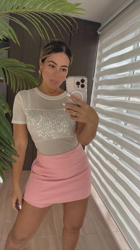 Blusa tipo camisa con lentejuelas, elegante y sofisticada, ideal para destacar en eventos, fiestas o noches especiales.
